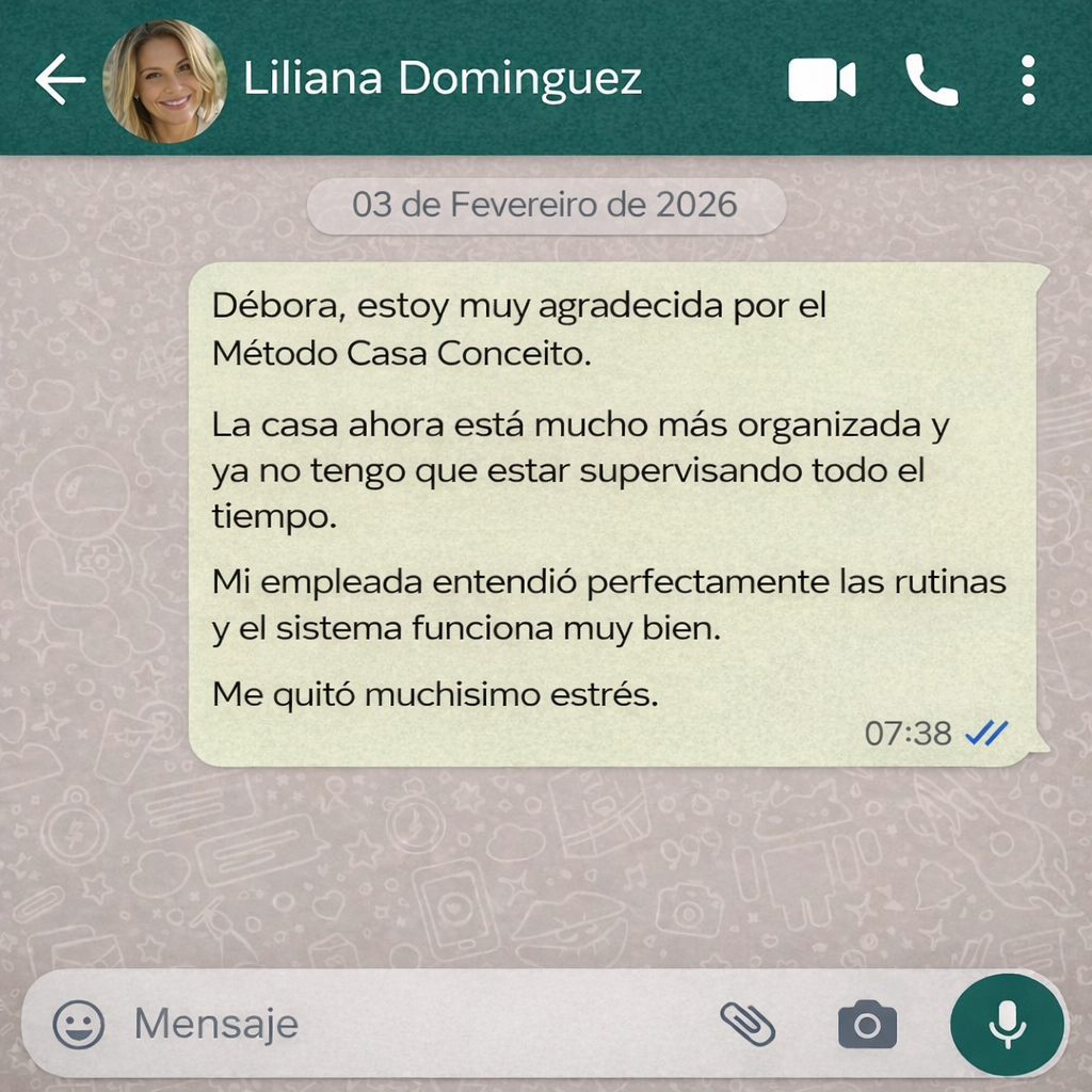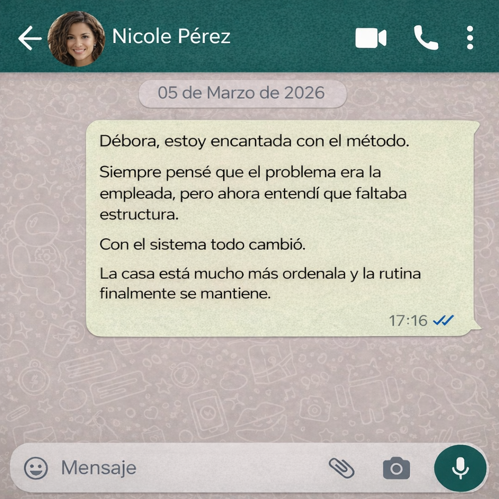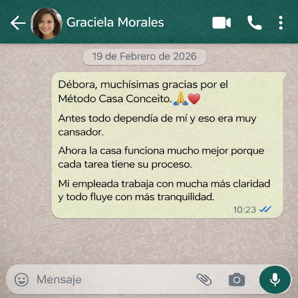 Su enfoque une gestión, organización, inteligencia emocional y liderazgo doméstico, creando un método que respeta la vida real — sin rigidez, sin sobrecarga y sin improvisación constante.